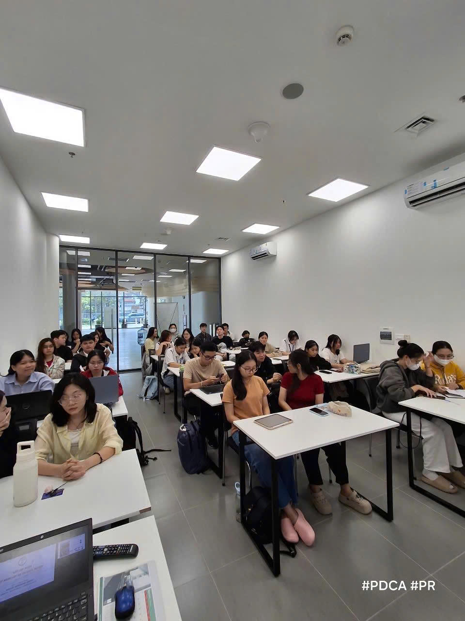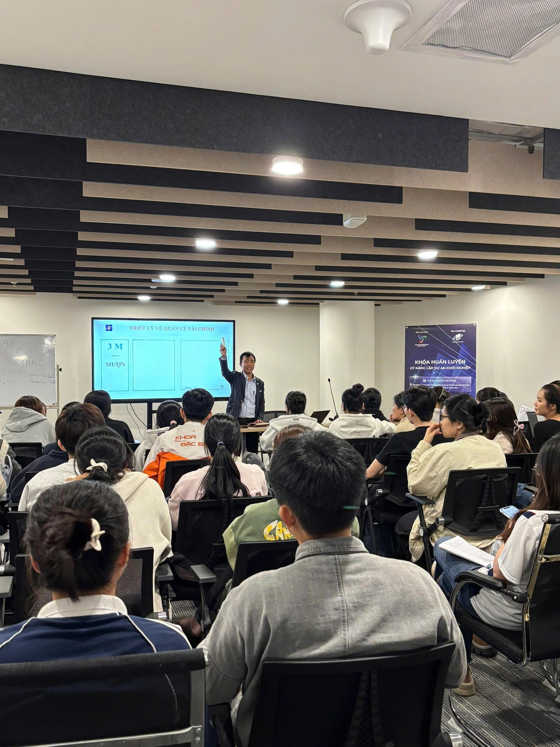 Không khí lớp học diễn ra sôi nổi, tập trung nhưng cũng đầy cảm hứng, khi các bạn sinh viên cùng gặp nhau với chung một mối quan tâm: làm thế nào để bắt đầu khởi nghiệp một cách bài bản và thực tế.
