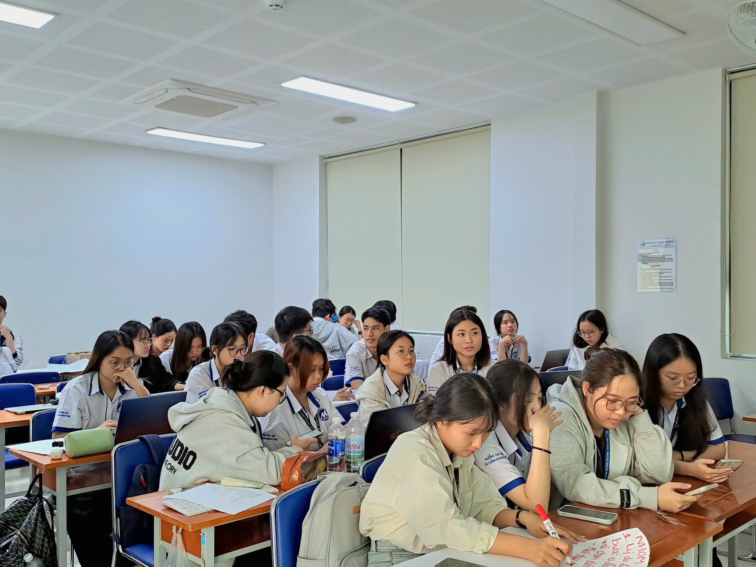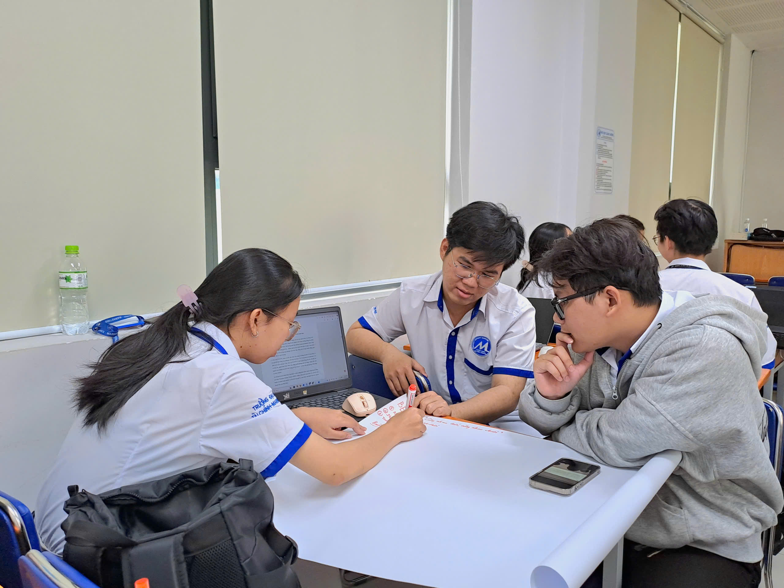 Một trong những điểm nhấn của khóa học là việc lồng ghép lý thuyết với thực hành trực tiếp ngay tại lớp. Sinh viên được chia thành nhiều nhóm nhỏ để cùng nhau thảo luận, phát triển ý tưởng, phản biện và hoàn thiện bài tập dưới sự hướng dẫn sát sao của giảng viên. Không khí làm việc nhóm diễn ra sôi nổi, cởi mở và đầy tính sáng tạo, tạo điều kiện để mỗi cá nhân mạnh dạn chia sẻ quan điểm, học hỏi lẫn nhau và từng bước hiện thực hóa ý tưởng của mình.