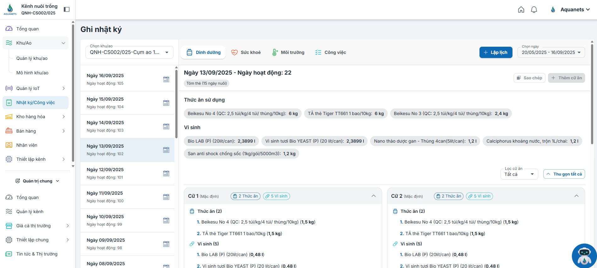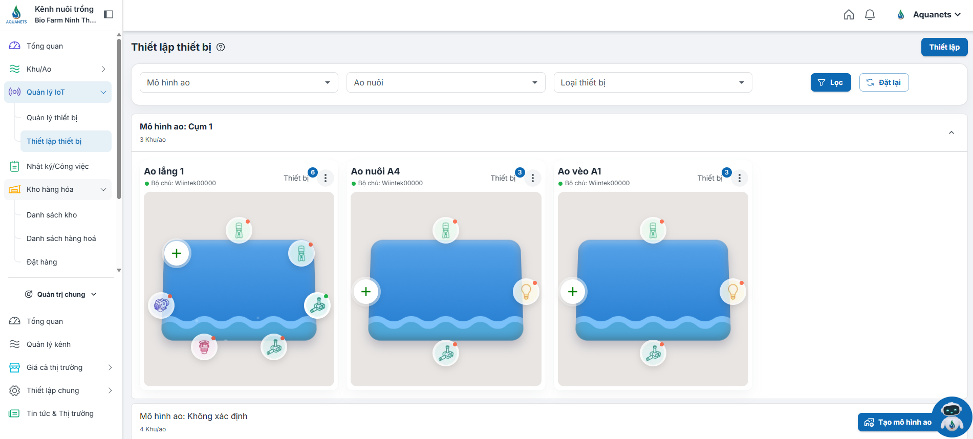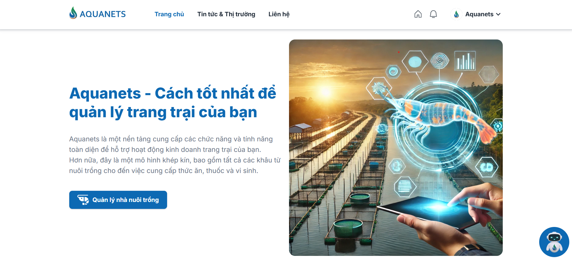 Aquanets là hệ thống quản lý sản xuất nuôi trồng thủy hải sản số hóa, cung cấp các công cụ và tính năng chuyên sâu giúp người dùng giám sát, quản lý và phân tích dữ liệu một cách hiệu quả. Hệ thống được phát triển trên nền tảng công nghệ đám mây, đảm bảo tính bảo mật, khả năng mở rộng và truy cập linh hoạt mọi lúc mọi nơi. Với Aquanets, mọi thông tin từ chất lượng nước, tình trạng sức khỏe của giống nuôi, đến quản lý thức ăn và chi phí sản xuất đều được số hóa, đồng bộ và hiển thị trực quan, tạo điều kiện thuận lợi cho việc đưa ra các quyết định chiến lược.
