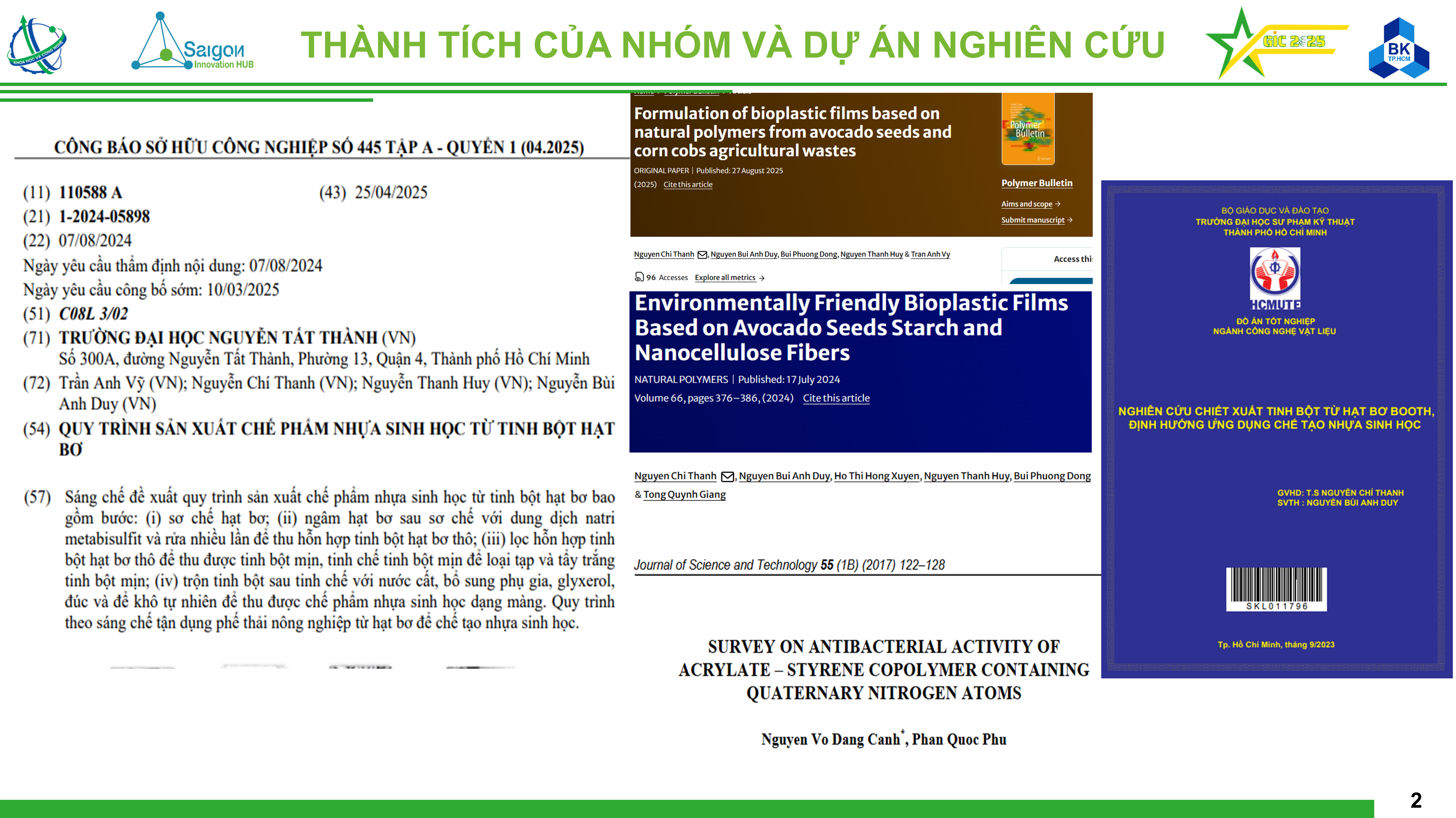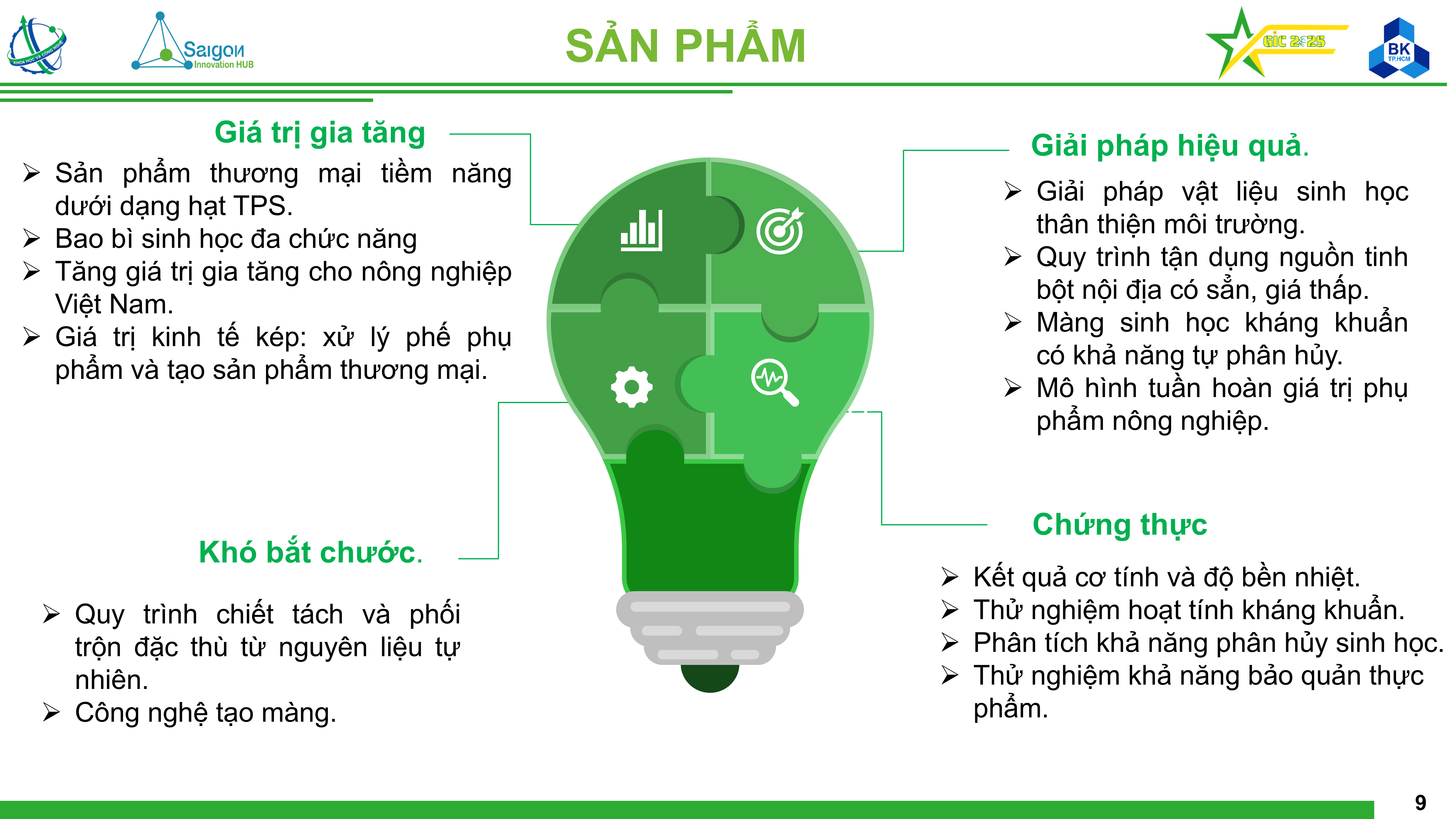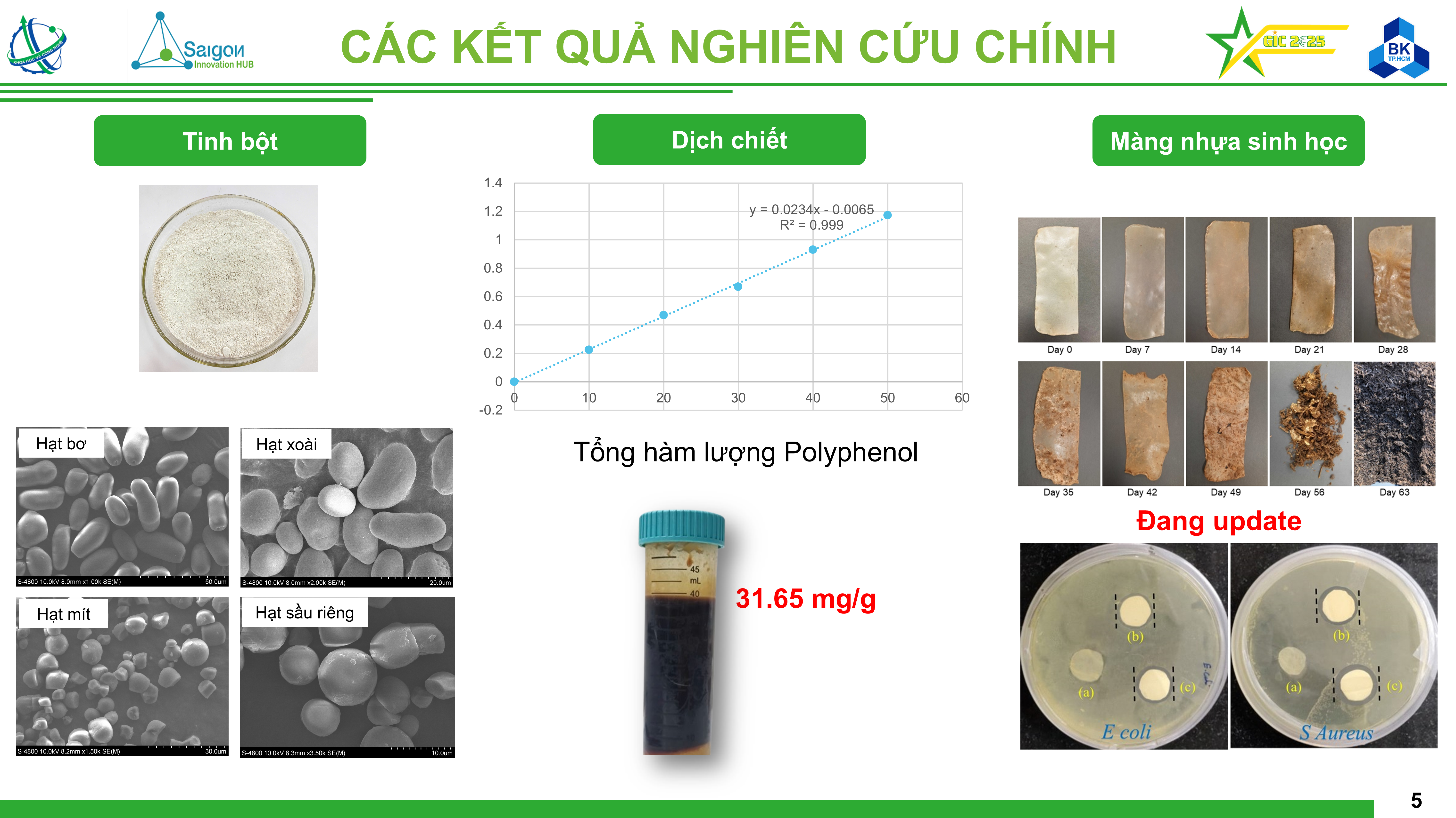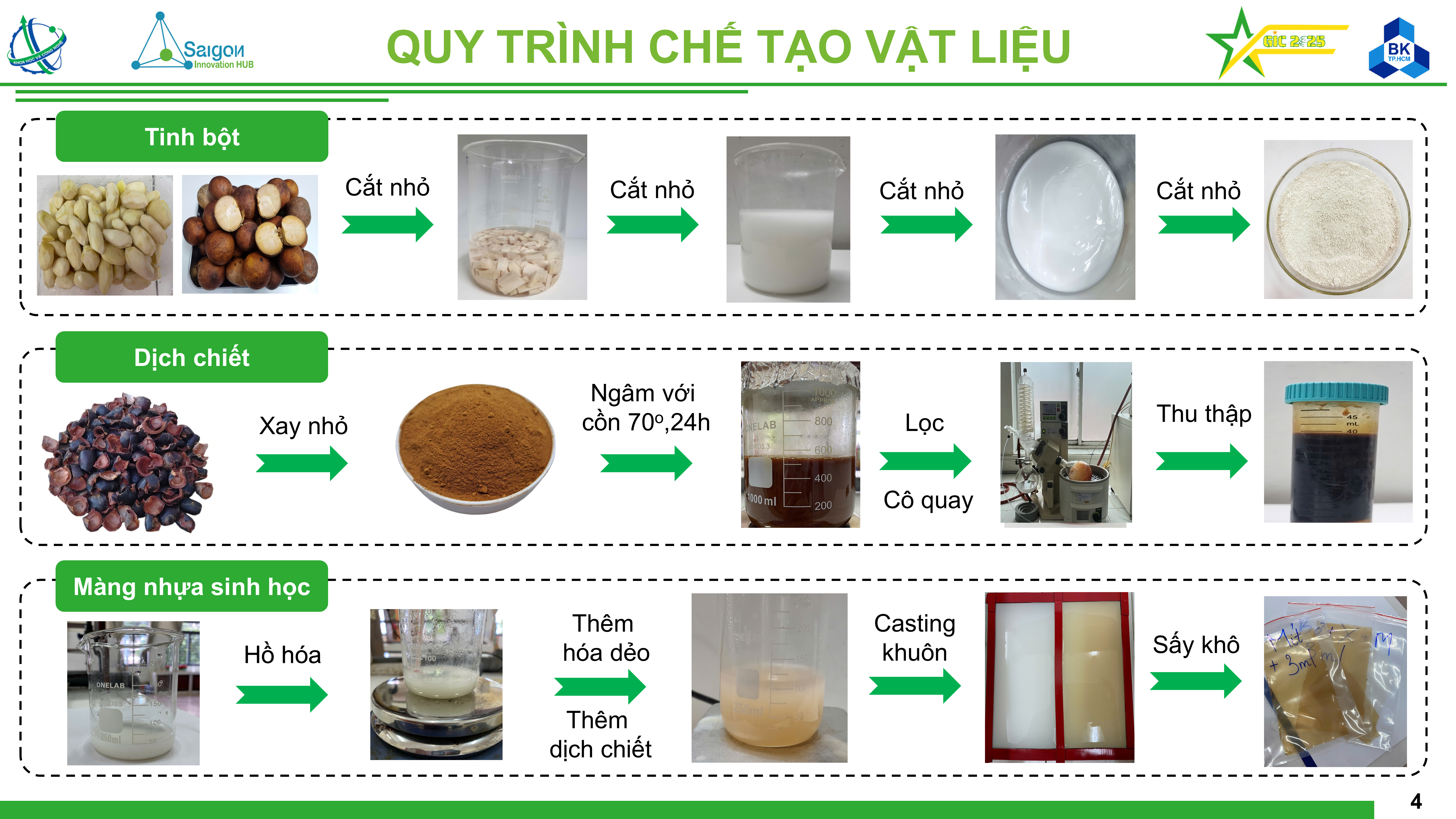 Ô nhiễm từ rác thải nhựa và tình trạng lãng phí tài nguyên nông nghiệp hiện đang là hai vấn đề môi trường cấp bách tại Việt Nam và trên thế giới. Dự án nghiên cứu này hướng đến việc giải quyết đồng thời cả hai thách thức trên thông qua việc chế tạo một loại bao bì đóng gói thực phẩm mới, thân thiện với môi trường và có khả năng kháng khuẩn. Nguyên liệu chính của bao bì được lựa chọn là tinh bột chiết xuất từ các loại phế phẩm nông nghiệp (như hạt mít, hạt sầu riêng) kết hợp với dịch chiết giàu hoạt tính kháng khuẩn từ vỏ măng cụt (Garcinia mangostana) của Việt Nam.